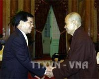Chủ tịch nước Nguyễn Minh Triết tiếp Thiền sư Thích Nhất Hạnh(12.05.07) VinhPhu.de