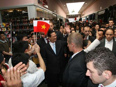 Thủ tướng nhắc nhở cần tạo dựng môi trường văn hoá tốt để các thế hệ tiếp theo hiểu được quê cha đất tổ và được tham gia những sinh hoạt cộng đồng như ở Việt Nam. Về việc mở ngân hàng tại Ba Lan, Thủ tướng khuyên Ban lănh đạo Trung tâm nên chọn giải pháp trước mắt là mua cổ phần của ngân hàng trong nước rồi mở chi nhánh tại Ba Lan. Thủ tướng ân cần hỏi thăm cộng đồng người Việt và chúng bà con quan hệ tốt với nước sở tại và luôn hướng về quê hương. Sau đó Thủ tướng đi đến tận gian hàng trong Trung tâm thương mại, đến đâu cũng hỏi han ân cần và bắt tay từng người không thiếu một ai. Những tiếng reo ḥ, những lá cờ vẫy không ngừng liên tiếp chào đón Thủ tướng.
