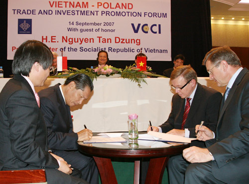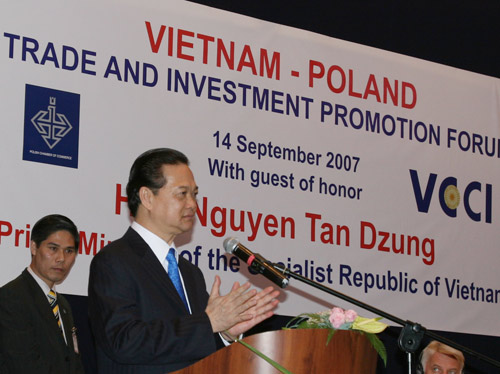 Cộng đồng hàng chục ngh́n người Việt tại Ba Lan, những người từng học tại Ba Lan và đang làm việc tại Việt Nam sẽ là cầu nối thúc đẩy quan hệ và hợp tác giữa hai nước. Việt Nam và Ba Lan là hai nền kinh tế đang phát triển và đều là thành viên của Tổ chức Thương mại Thế giới... Với những yếu tố thuận lợi đó, Thủ tướng kêu gọi doanh nghiệp Ba Lan và doanh nghiệp Việt Nam tăng cường hợp tác đầu tư, phát triển thương mại, du lịch tại Ba Lan và Việt Nam. Thủ tướng nhấn mạnh: Sự hợp tác hiệu quả giữa các doanh nghiệp sẽ góp phần thúc đẩy quan hệ hữu nghị và hợp tác giữa hai nước. Ba Lan hiện là bạn hàng Đông Âu lớn nhất của Việt Nam với kim ngạch buôn bán hai chiều đạt 330 triệu USD.