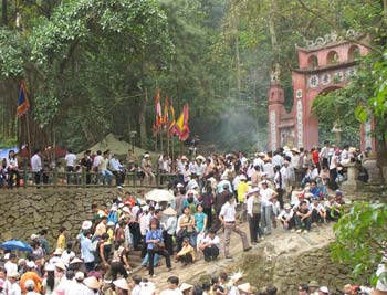 Đền Hùng nhộn nhịp ngày khai hội (24.04.07) Hàng chục ngh́n khách thập phương đă đổ về núi Nghĩa Lĩnh (xă Hy Cương, Lâm Thao, Phú Thọ) từ sáng 22/4 (mùng 6/3 âm lịch), ngày mở đầu cho 5 ngày Giỗ tổ Hùng Vương. Tuy người đông nhưng do chuẩn bị chu đáo nên an ninh được đảm bảo khá tốt. Rất đông du khách đến Đền Hùng sáng qua là học sinh - sinh viên và giới công chức các tỉnh lân cận như Hải Pḥng, Bắc Ninh, Hưng Yên, v́ ngày khai hội năm nay rơi vào chủ nhật. Tuy nhiên, các chuyến xe khách từ Hà Nội đi Đền Hùng lại vắng vẻ. Anh Lâm, một tài xế ở bến xe Mỹ Đ́nh cho biết, hiếm khi tuyến Hà Nội - Phú Thọ ngày chủ nhật lại đ́u hiu như vậy. Thành phố Việt Tŕ rực rỡ cờ, băng rôn chào đón “con Rồng, cháu Tiên” và khách quốc tế về dự hội. Công an tỉnh Phú Thọ chặn xe ôtô từ cổng chào để tránh ách tắc nên du khách buộc phải đi bộ, hoặc đi xe ôm vào đền. Các bác tài ra giá “vô cùng”, nên “thượng đế” thường phải trả gấp đôi, gấp ba cái giá 5.000 đồng của những người khéo mặc cả.