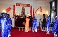 Giỗ Tổ Hùng Vương tại Washington (Mỹ) (29.04.07) Tối mùng 10-3 Âm lịch (tức 26-4-2007), Đại sứ quán Việt Nam tại Mỹ đă tổ chức lễ giỗ Tổ Hùng Vương theo nghi lễ truyền thống. Hơn 200 cán bộ, công nhân viên đang công tác tại Đại sứ quán, các cơ quan đại diện Việt Nam tại Mỹ và đại diện bà con Việt kiều, du học sinh ở khu vực thủ đô Washington đă đến dâng hương tưởng nhớ các Vua Hùng. Lễ Giỗ Tổ được tiến hành trong không khí trang nghiêm với các nghi thức tế và lễ thành kính truyền thống. Sau lời khai lễ, phần khởi lễ bắt đầu với các nghi thức dâng hoa, dâng rượu và dâng hương và đọc chúc văn. Mọi người tham dự lần lượt lên thắp hương và lễ tạ, bày tỏ ḷng biết ơn các vị Vua Hùng. Sau phần nghi lễ chính thức, mọi người cùng thưởng thức các món ăn dân tộc như bánh chưng, bánh dày, gị, chả... và tham gia chương tŕnh văn nghệ do các nghệ sĩ từ trong nước sang biểu diễn.